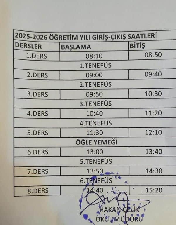 OKUL GİRİŞ-ÇIKIŞ SAATLERİ